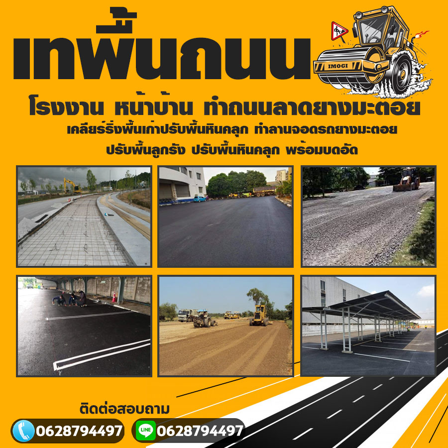 รับทำถนนลาดยางโทร 062-8794497 รับทำลานจอดรถ สร้างถนนลาดยาง รับเคลียร์พื้นที่ ทำพื้นหินคลุก คอนกรีตพิมพ์ลาย